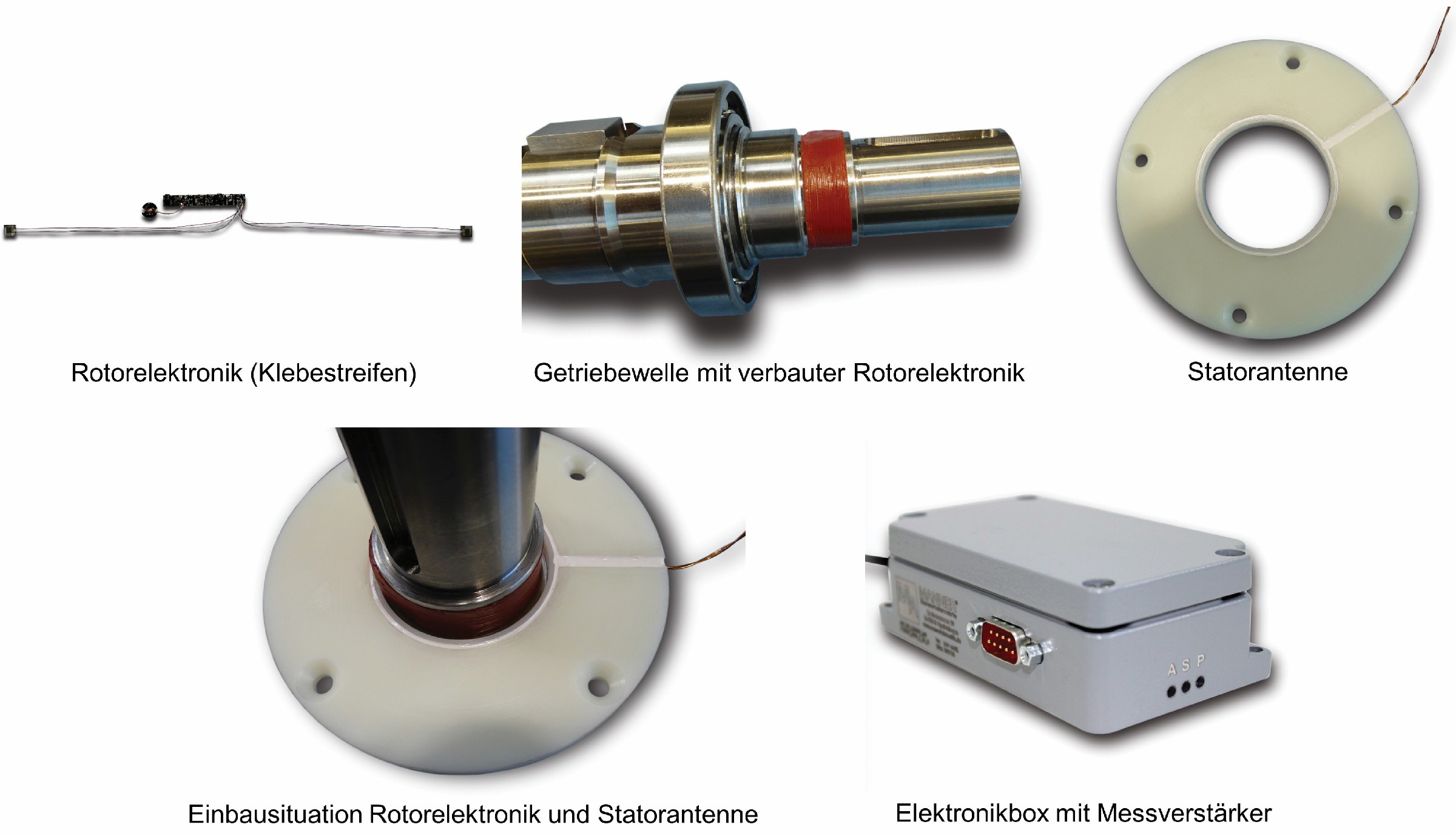 Das System Q-Torque besteht aus wenigen Einzelkomponenten, die für nahezu beliebige Kundenapplikationen anpassbar und einsetzbar sind. Auf der Getriebewelle ist eine Rotorelektronik anzubringen, welche eine geringe Aufbauhöhe von weniger als 4 mm benötigt. Als „Klebestreifen“ kann die Rotorelektronik einfach auf der Welle befestigt werden. Die DMS, bestehend aus zwei Vollbrücken, sind hierbei bereits im Kit integriert.