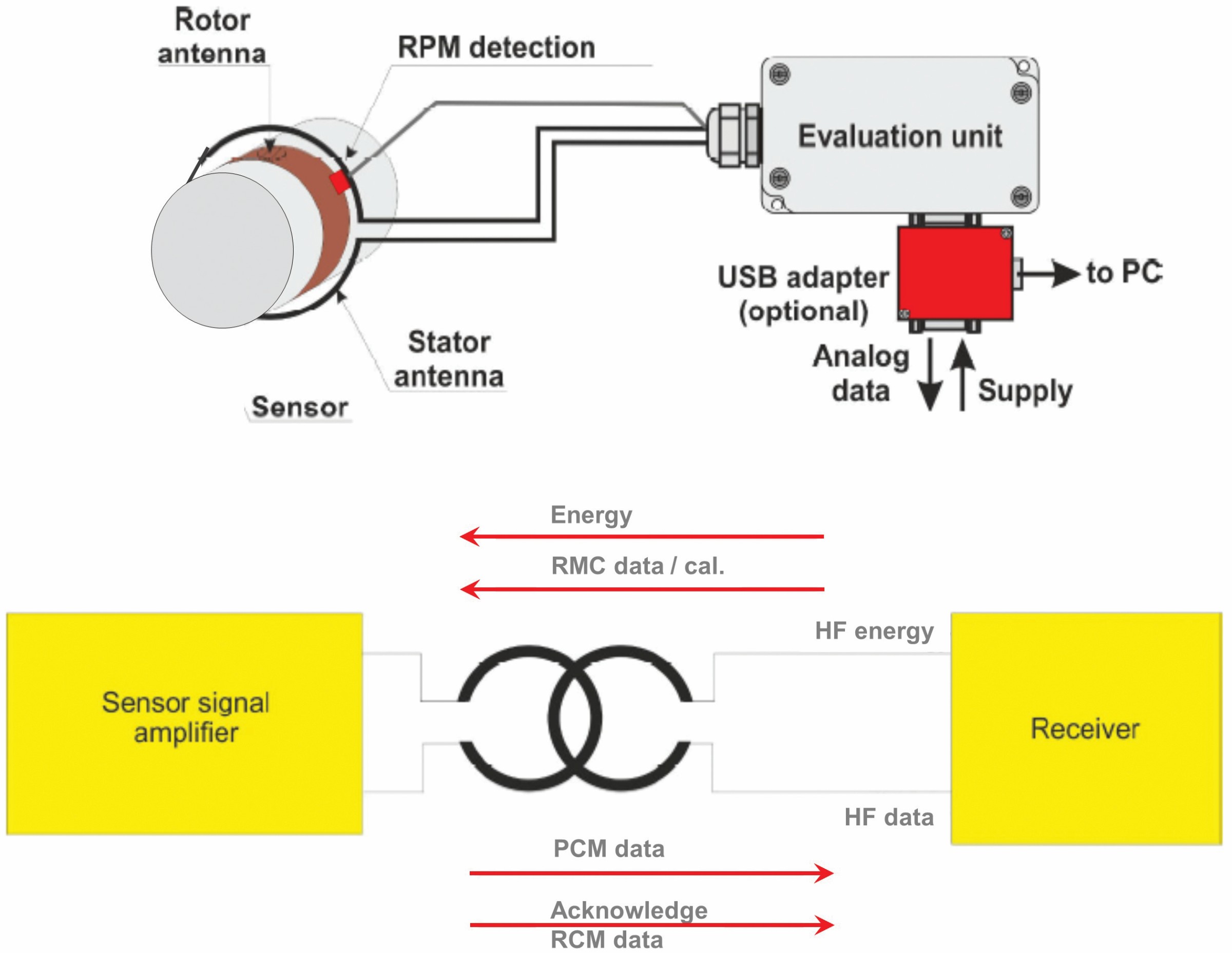 Damit sind Drehschwingmessungen im Strang möglich, was zusätzliche Beschleunigungsaufnehmer und die zugehörige Messelektronik einsparen kann. Zudem kann das System um Drehzahl- und Temperaturmessungen erweitert werden, womit eine umfassende Antriebsbeobachtung ermöglicht wird. Bild 3 zeigt den schematischen Aufbau des Messsystems.