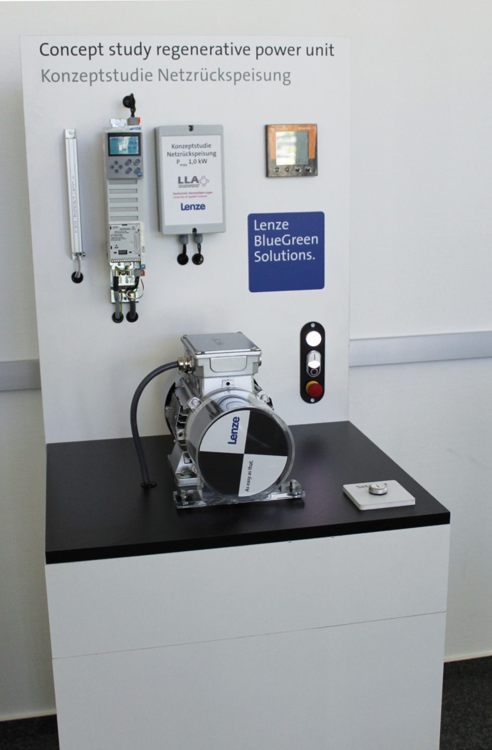 Die Firma Lenze hat gemeinsam mit der Hochschule Ostwestfalen einen Weg gefunden, Bremsenergie wirtschaftlicher zu nutzen. Dabei geht es um genau das Leistungspotential, das nach mechanischen Optimierungen oder einem Gleichstrom-Zwischenkreisverbund von Mehrachssystemen in Produktionsprozessen noch ungenutzt übrig bleibt. Einsatzgebiet sind beispielsweise horizontal arbeitende Einzelachsen, bei denen es bis dato kaum möglich war, die anfallende Bremsenergie betriebswirtschaftlich sinnvoll zu erschließen. Das entwickelte Energie-Rückspeisesystem arbeitet so effektiv, dass künftig auch Fahrantriebe im Materialfluss sinnvoll mit einer Rückspeisung versehen werden können.