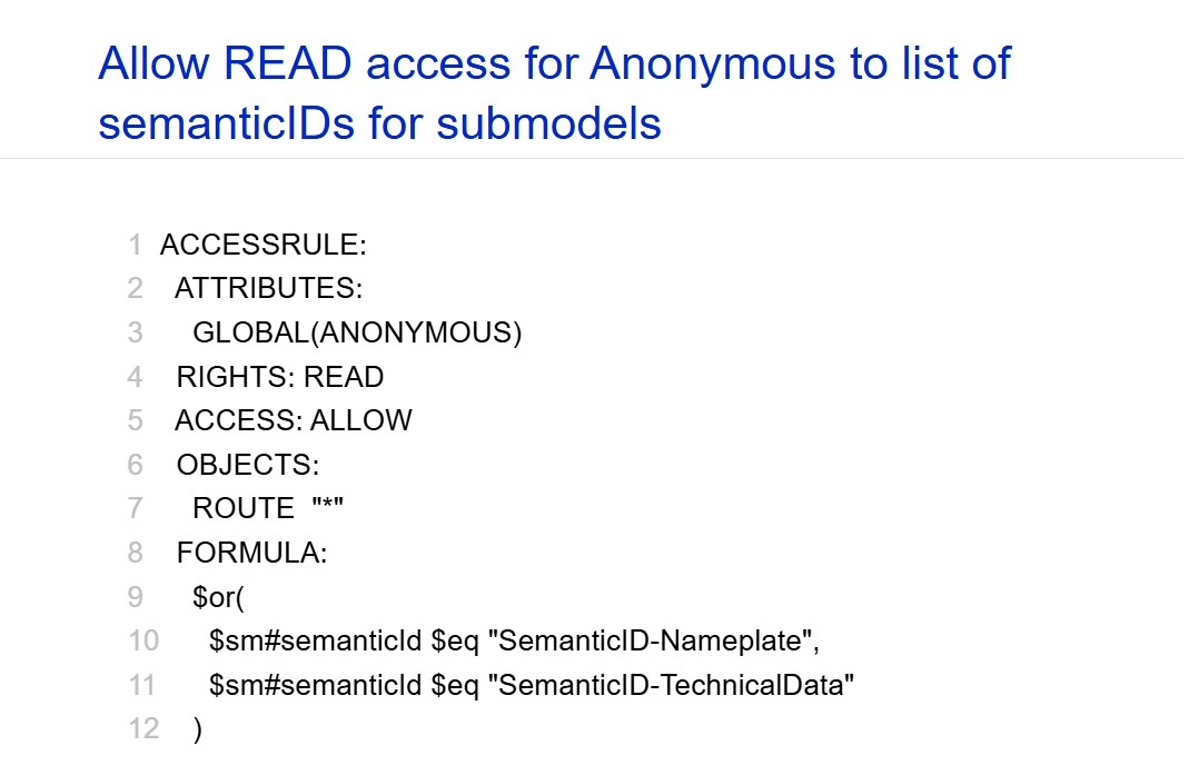 Zugriffsregel für öffentlich zugängliche Submodelle, namentlich Nameplate und Technical Data.