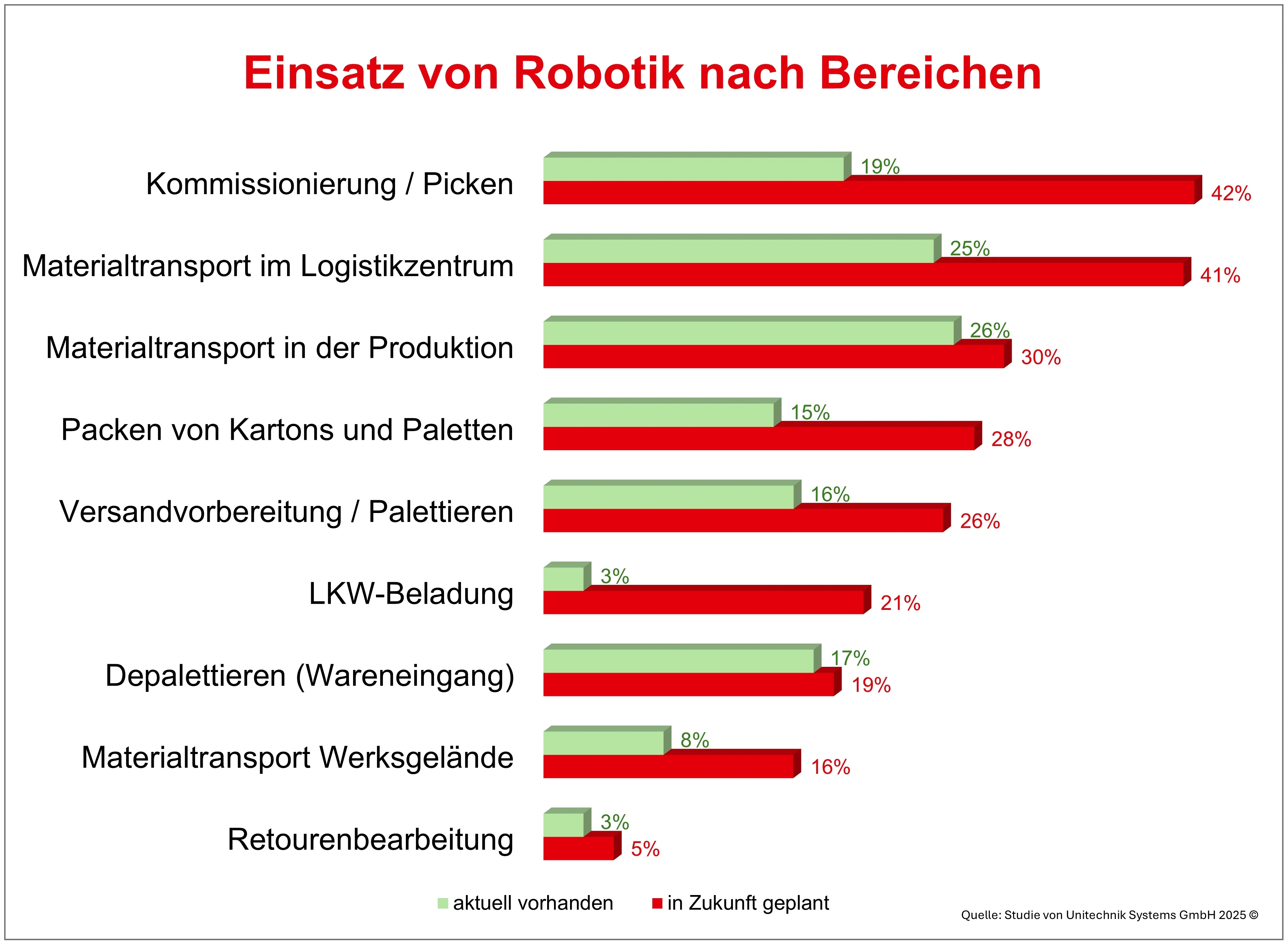 Für diese Tätigkeiten setzen Unternehmen bereits Robotersysteme ein oder planen entsprechende Investitionen. Grafik: Unitechnik