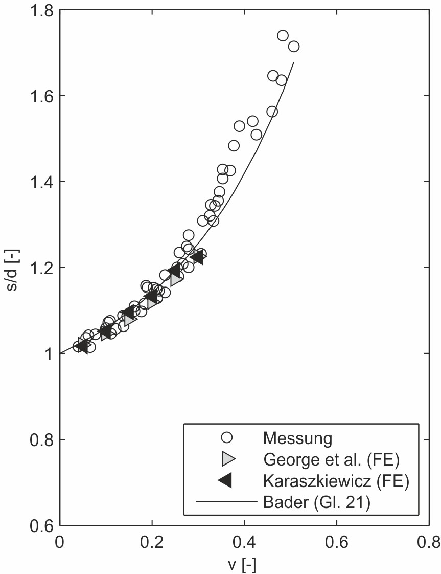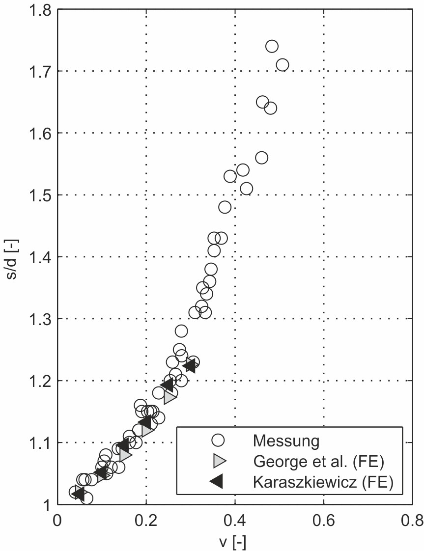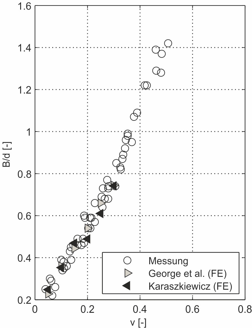 Darüber hinaus sind die Ergebnisse der Finite Element (FE)- Berechnungen von Karaszkiewicz [11] und George et al. [11], [14] für die Berühr- und Dichtungsbreite eingetragen. Die Messdaten liegen in sehr guter Übereinstimmung mit diesen FE-Berechnungen.