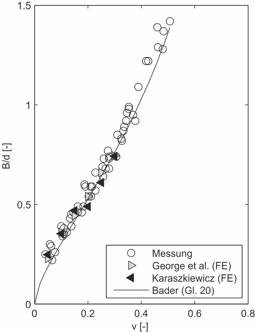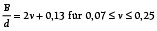 Gl. (1) gibt die auf den Schnurdurchmesser d normierte Berührbreite B als Funktion von der Verpressung v an. Hierbei ist: