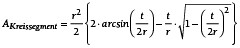 Alle übrigen Größen, die zur Beschreibung des Kreissegments erforderlich sind, lassen sich in Abhängigkeit vom Radius r formulieren. Somit berechnet sich der Flächeninhalt eines Kreissegments zu: