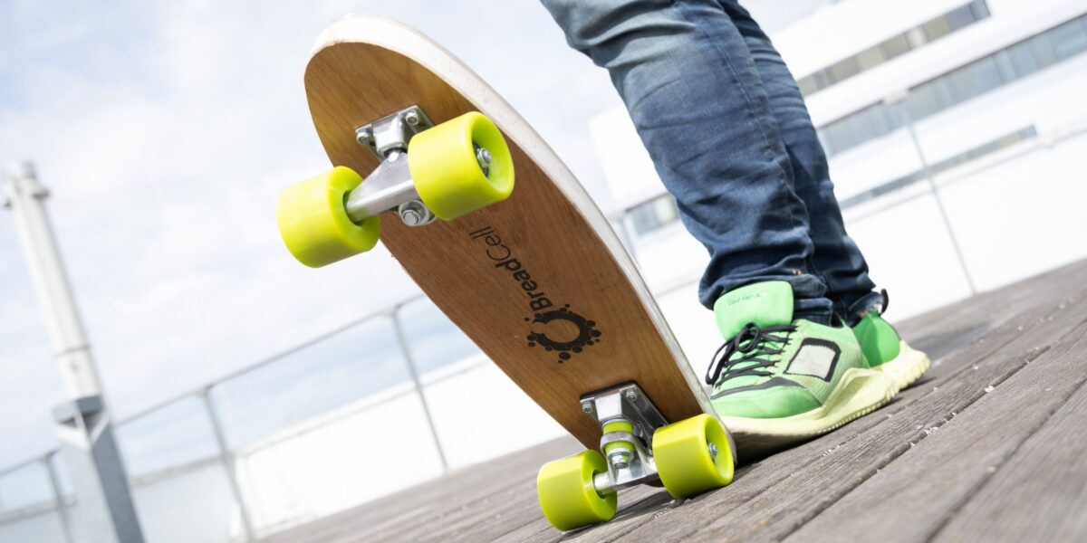 Ein Skateboard aus biologisch abbaubarem Schaumstoff.