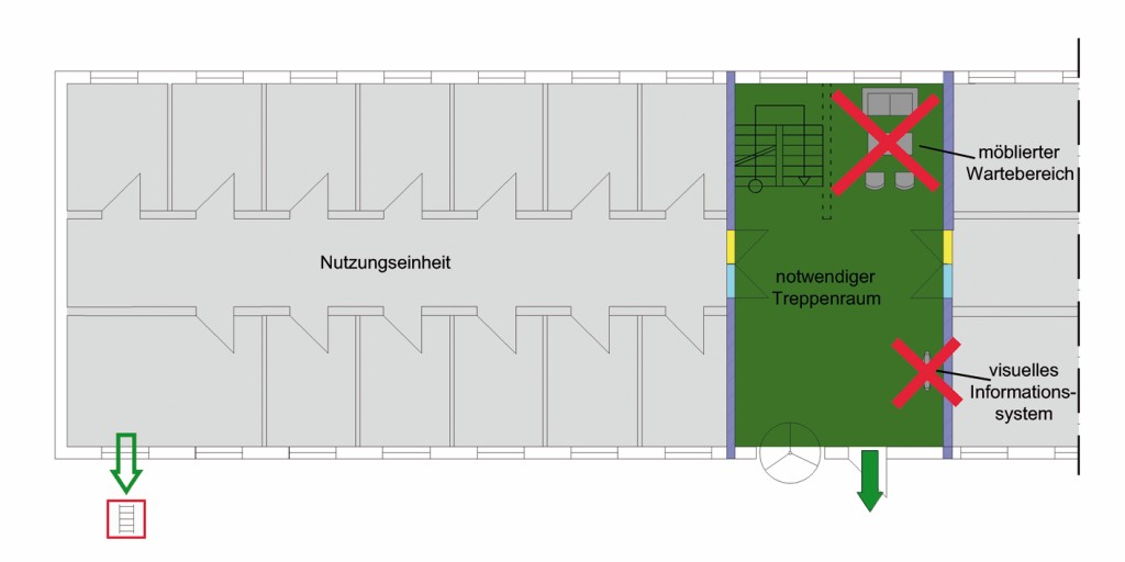 Aus der Summe dieser Anforderungen werden in [3] nachfolgende Ziele abgeleitet, die durch die Ausbildung eines vollwertigen notwendigen Treppenraums erfüllt werden: