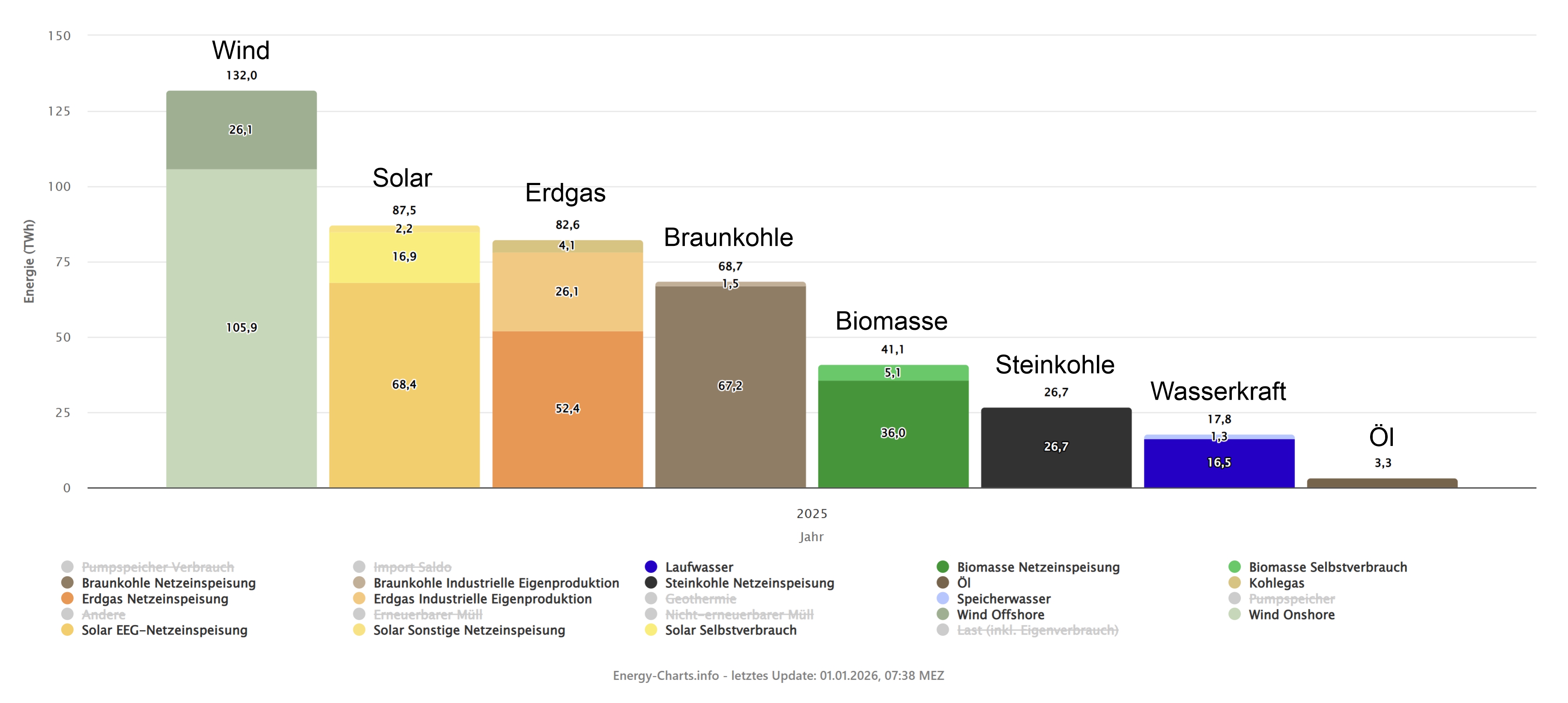 Energieerzeugung 2025 05.01.2026, 12:30 Uhr