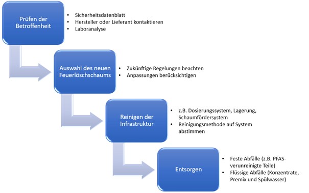 Eine Orientierungshilfe für das schrittweise Umstellen auf fluorfreie Feuerlöschschäume. Grafik: BAuA