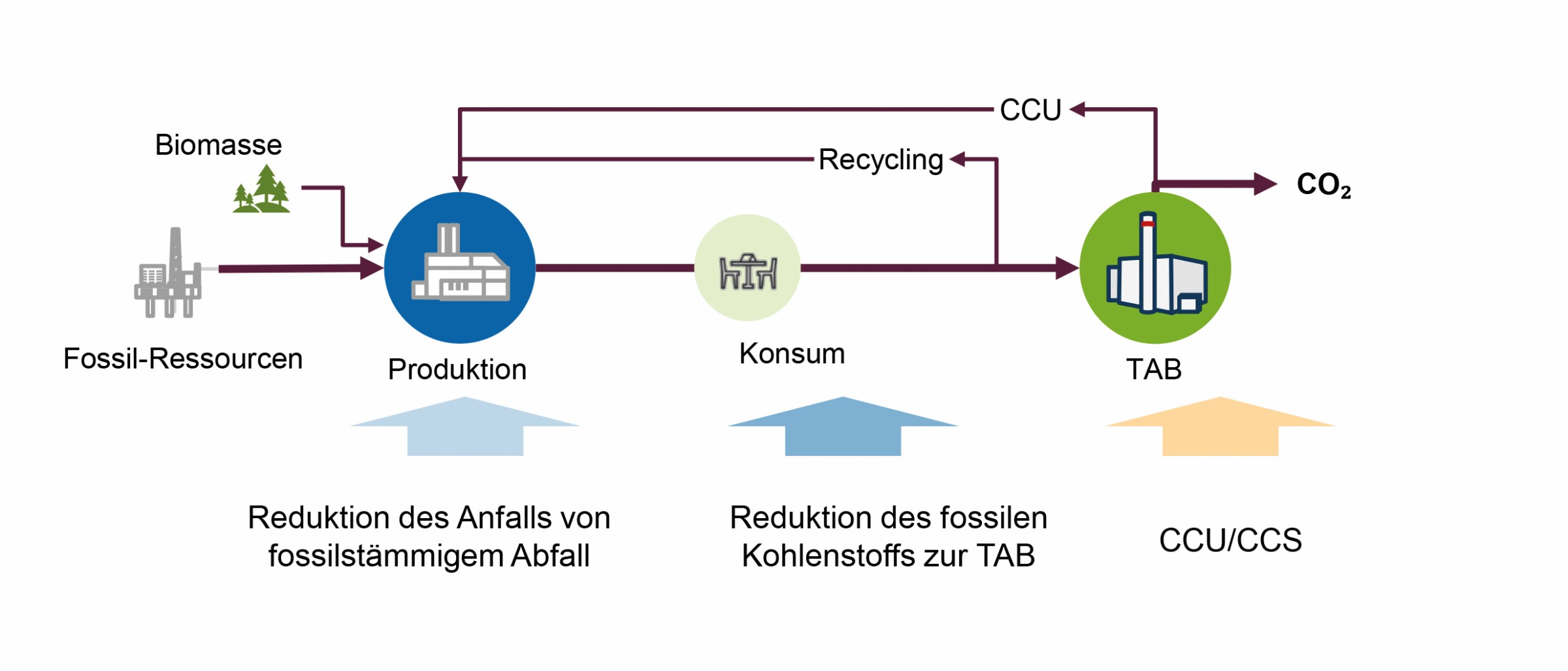 Die CO2-Abscheidung aus Abgas ist eine nachgeschaltete Klimaschutzmaßnahme. Idealerweise würden THG-Emissionen bereits an früheren Stellen der Wertschöpfungskette vermieden werden. Dies würde jedoch zu teils spürbaren Eingriffen in das Wirtschaftssystem führen. Zu diskutieren sind Konsumreduktion, Steigerung der Produktlebensdauer sowie Substitution fossiler Rohstoffe durch Biomasse oder durch recycelte Rohstoffe. Auf Basis einer Nutzen-Aufwand-Abwägung sollte Maßnahmen der Emissionsminderung kurz- und mittelfristig weiterhin hohe Priorität zukommen.