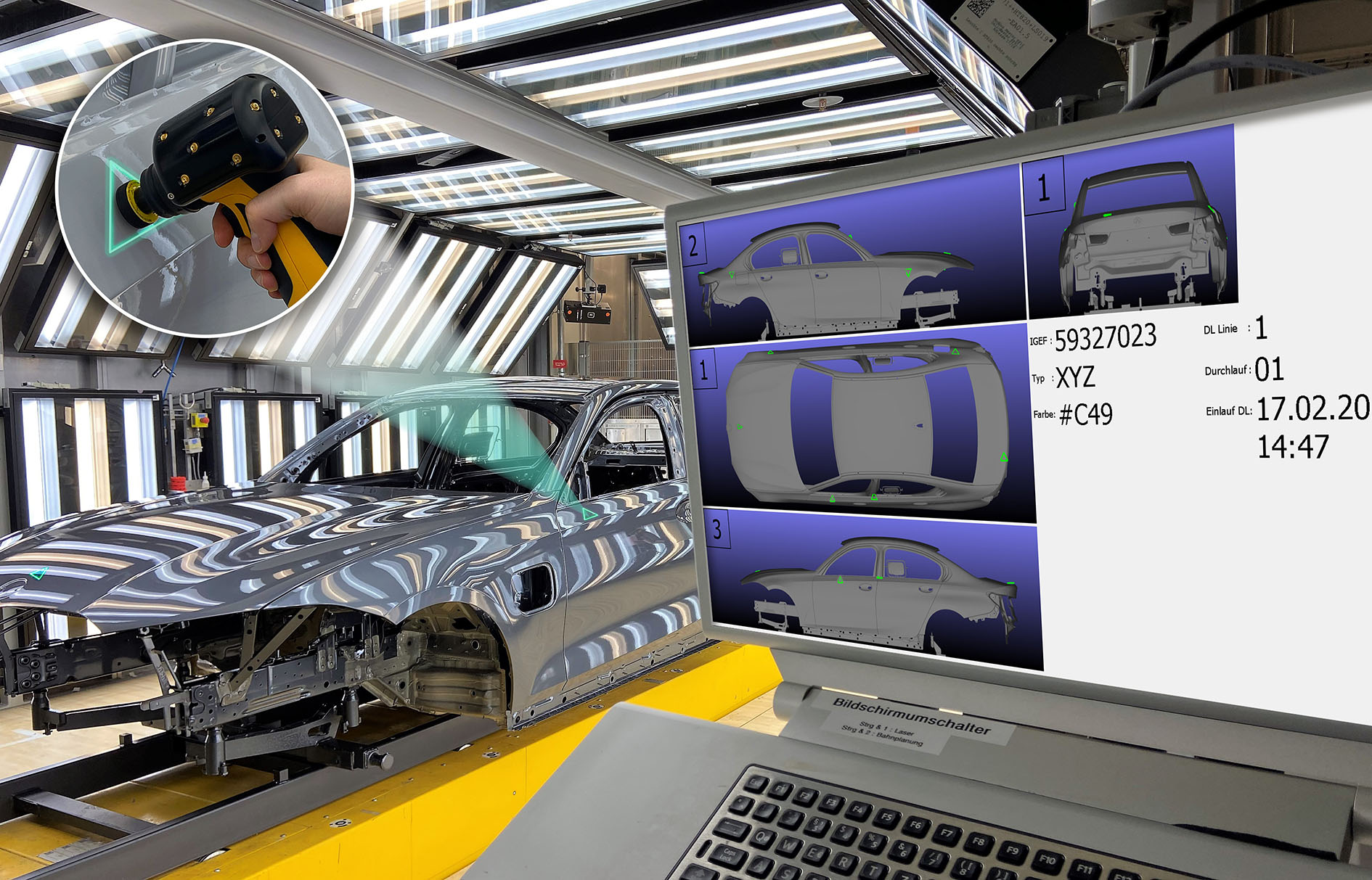 BMW nutzt diese Option zum Beispiel beim Qualitätssicherungsprozess in der Lackiererei und kombiniert dort Werkzeugtracking mit Werkerführung. Sobald ein Mitarbeiter eine nachzubearbeitende Stelle geschliffen hat, wechselt die Laserprojektion von einem grünen Dreieck in einen grünen Kreis. Der Werker weiß jetzt, dass er hier noch polieren muss. Ist auch dieser Arbeitsschritt abgeschlossen, verschwindet die Projektion ganz. Das digitale Werkzeugtracking dokumentiert zusätzlich auch Prozessparameter – wie den Anpressdruck beim Schleifen und Polieren. Der Autobauer sammelt die Daten und analysiert sie, um die Produktion weiter zu optimieren.