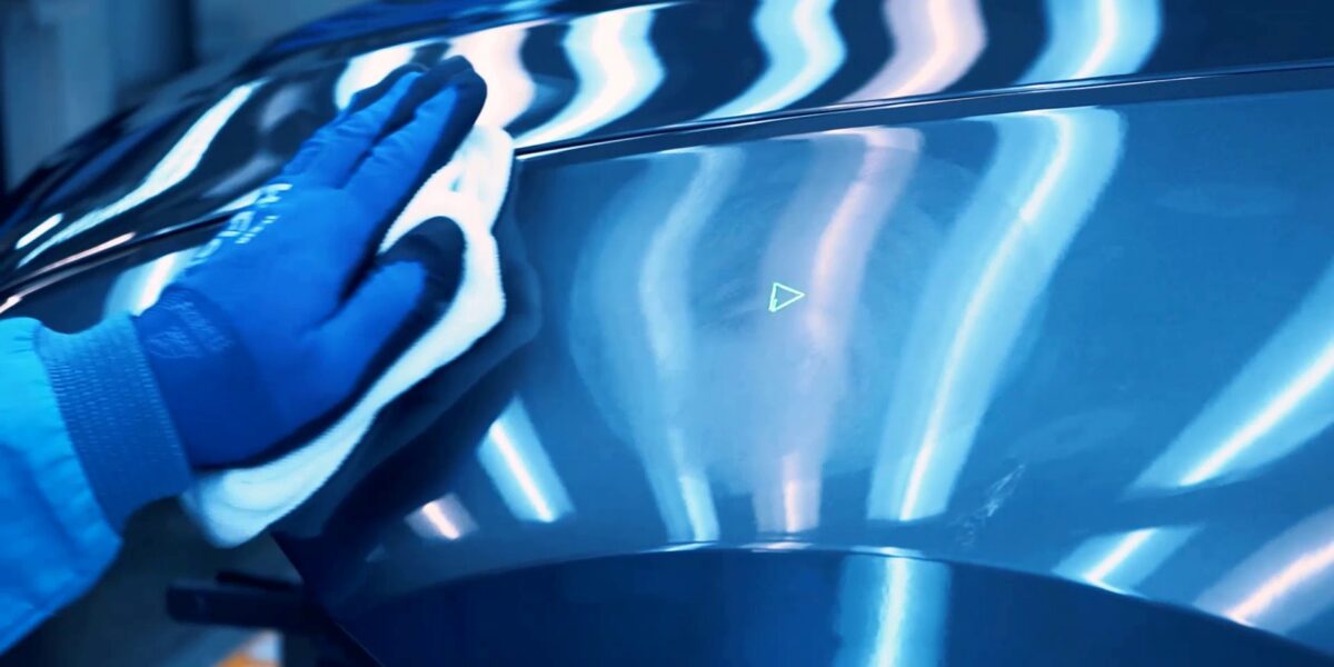 Die Laserprojektion zeigt dem Werker zum Beispiel exakt an, wo der Lack eines Automobils an der Außenhaut poliert werden muss. Grafik: Extend3D