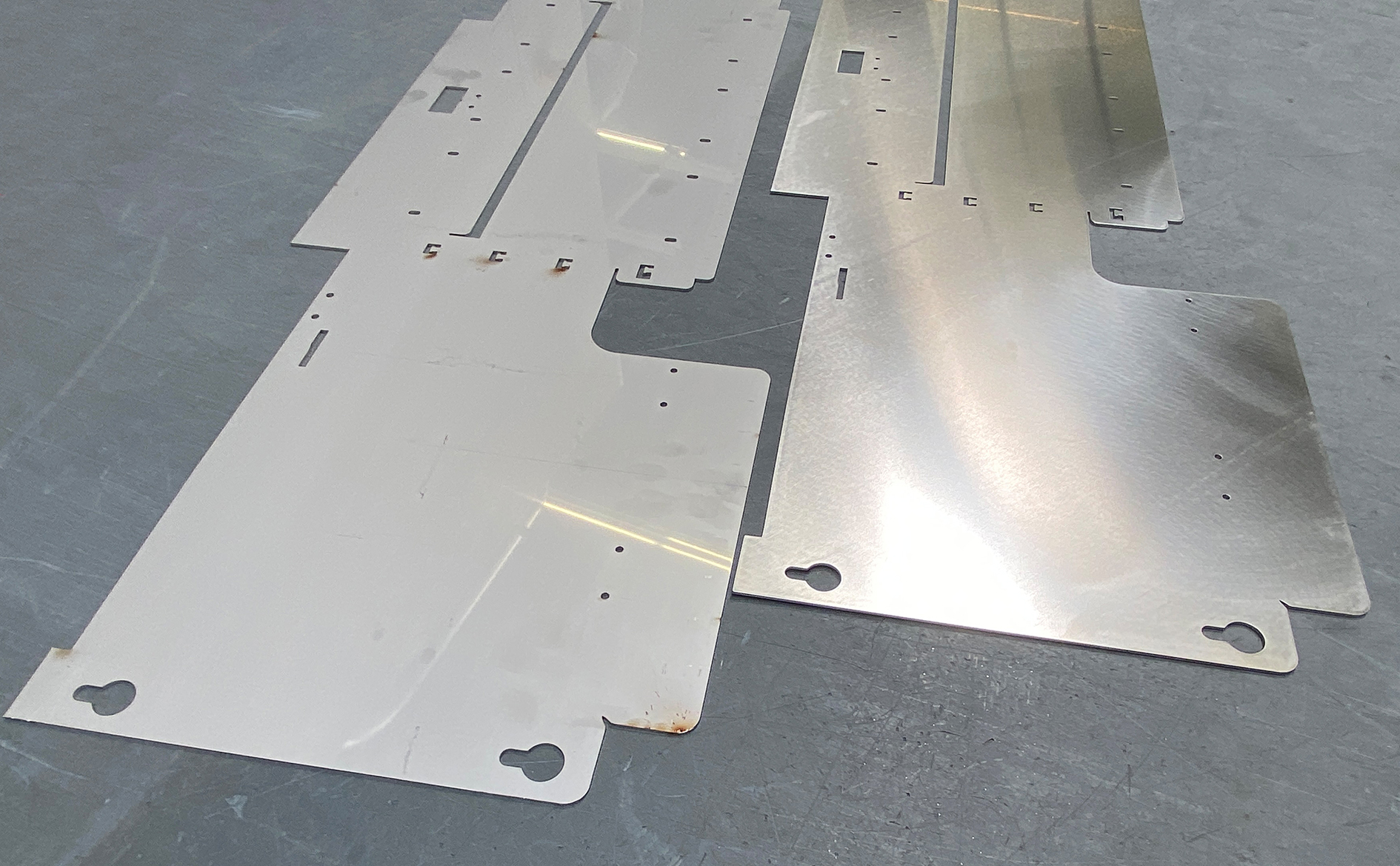 Die Anschaffung von zwei vollautomatisierten Trumpf-Fiberlaser-Schneidmaschinen erforderte eine nachgeschaltete leistungsfähige Entgrattechnik. Zum Einsatz kommen hier zwei universelle Schleif- und Entgratmaschinen „SMD 345 S-Edition“ mit Rotationsbürstentechnologie. Sie gewährleisten das Entgraten und Kantenverrunden in einer einstellbaren Qualität und Tiefe.