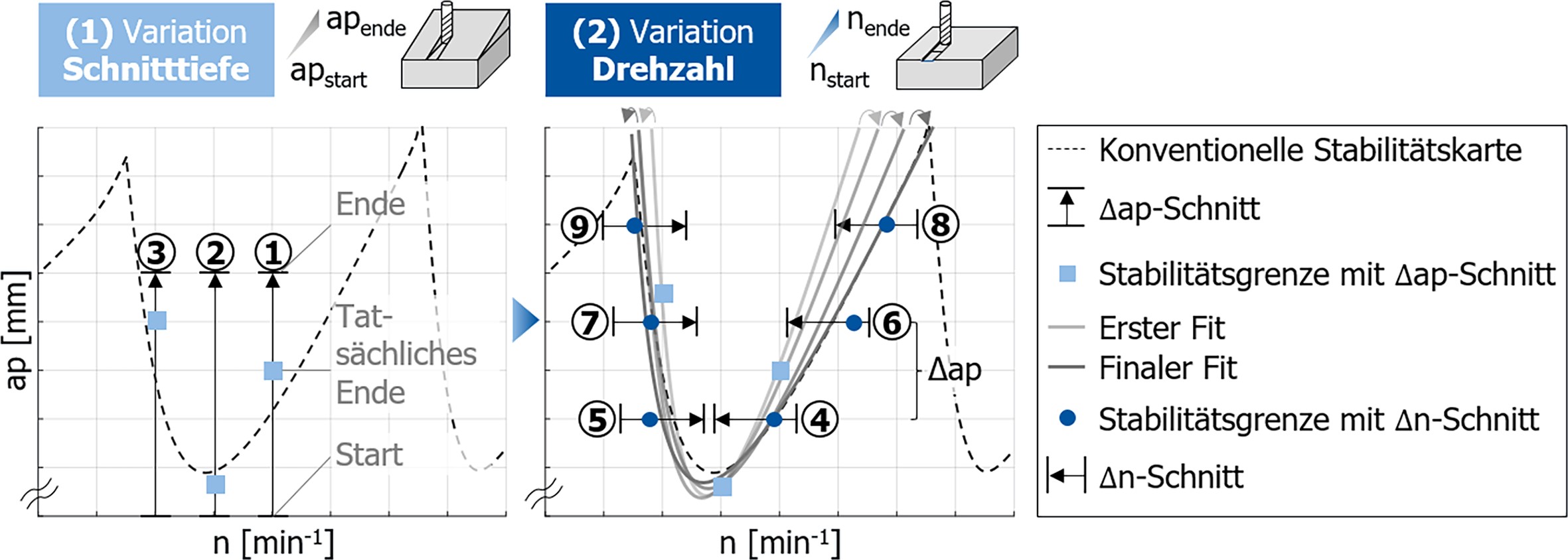 Die Produktivität zerspanender Fertigungsprozesse wird heutzutage nach wie vor maßgeblich durch dynamische Prozessinstabilitäten limitiert. Eine a priori Ermittlung dieser Grenzen ermöglicht einen hauptzeitminimierenden Fertigungsprozess, ist jedoch unter Nutzung konventioneller Verfahren mit wesentlichen Zeit- und Materialaufwänden verbunden. Dieser Beitrag stellt Forschungsergebnisse vor, die diese Aufwände um circa 85 % reduzieren. S. 220