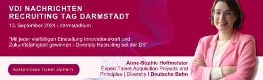 Zum Thema „Mit jeder vielfältigen Einstellung Innovationskraft und Zukunftsfähigkeit gewinnen – Diversity Recruiting bei der DB“ wird Anne-Sophie Hoffmeister bei unserem Recruiting-Tag in Darmstadt sprechen.