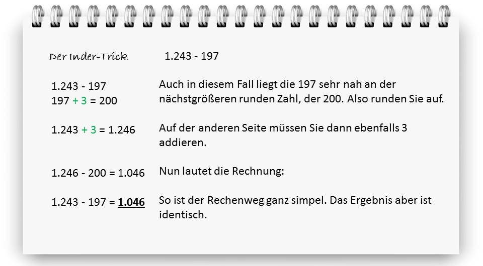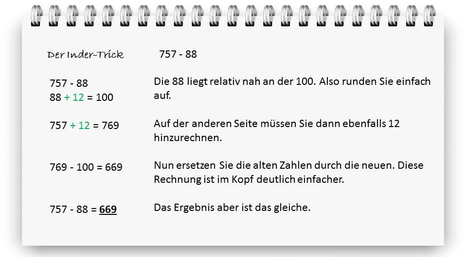 | Übung zum Kopfrechnen mithilfe des Inder-Tricks | |