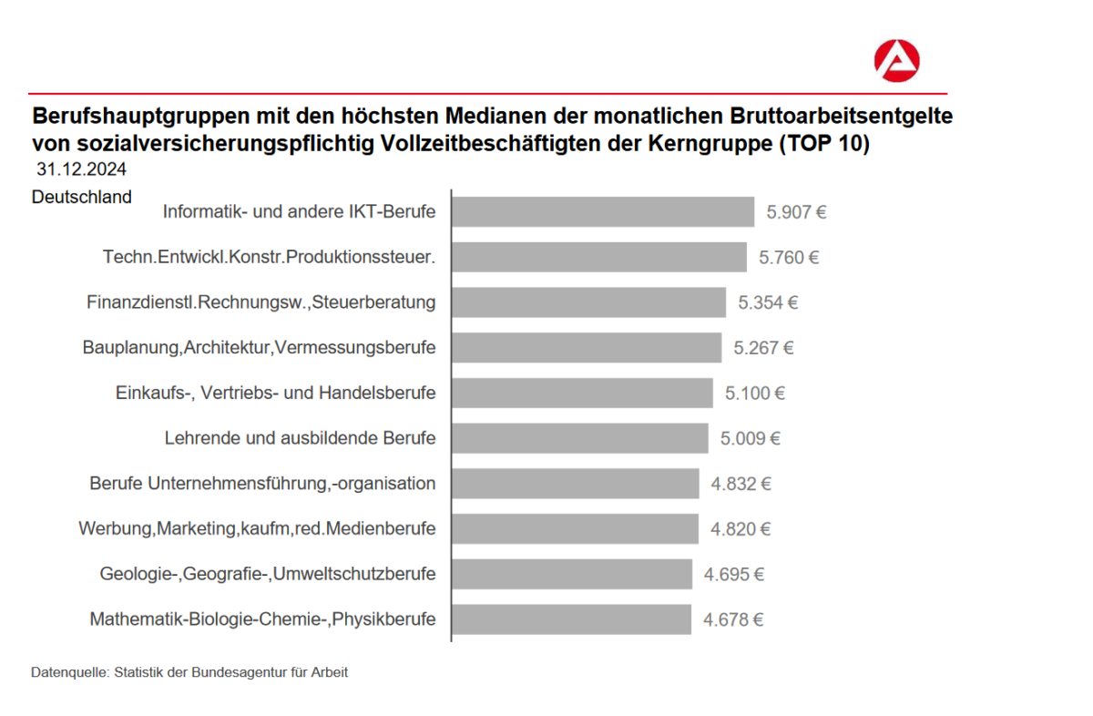 Der Entgeltatlas zeigt, wie unterschiedlich das Medianentgelt je nach Branche und Tätigkeit sein kann. Er gibt einen klaren Einblick in die Gehaltsverteilung und macht Unterschiede sichtbar – ein praktisches Werkzeug, um Einkommen besser zu verstehen.