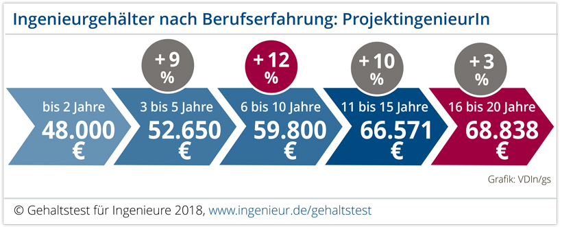 Das heißt natürlich nicht, dass Sie automatisch jedes Jahr Gehaltsverhandlungen führen sollten. Hier ist ein bisschen Fingerspitzengefühl gefragt. Läuft beispielsweise ein Projekt über 2 Jahre, macht es Sinn, erst nach erfolgreichem Abschluss das Thema Geld erneut anzusprechen. Außerdem sollten Sie als erfahrener Ingenieur einbeziehen, wie hoch die letzte Gehaltsanpassung ausgefallen ist und wie der Gesprächsverlauf war. Hat der Arbeitgeber beispielsweise weitere Gehaltserhöhungen in Aussicht gestellt oder umgekehrt für die nähere Zukunft ausgeschlossen? Zu lange warten sollten Berufserfahrene jedenfalls auch nicht. Das wird häufig als mangelndes Selbstbewusstsein oder sogar Unsicherheit ausgelegt. Länger als 3 Berufsjahre darf der Zeitraum bis zur nächsten Gehaltserhöhung daher im Normalfall nicht betragen.