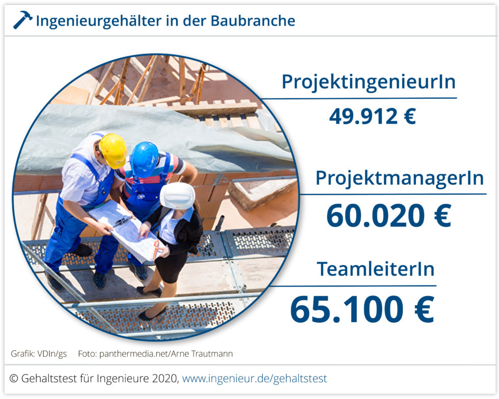 Bauingenieurinnen und -ingenieure verdienten als Projektmanager beziehungsweise Projektleiter im Jahr 2021 durchschnittlich 62.748 Euro.