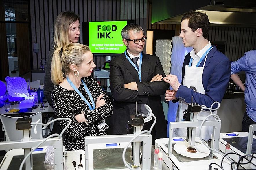 Die Erfinder des 3D-Druck-Restaurants wollen mit ihren Speisen auf Tournee gehen. Hier ein Bild einer Demonstration in Venlo in den Niederlanden.