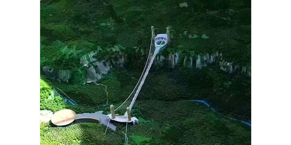Vor ziemlich genau einen Monat haben wir die ultimative Mutprobe für Ingenieure in Deutschland vorgestellt: die Geierlay-Hängebrücke am Rande des Hunsrücks. Diese spannt sich in 100 m Höhe auf eine Länge von 360 m über das Tal. Wenn Sie diesen Angriff auf die Sinne inzwischen erfolgreich gemeistert haben, empfehlen wir Ihnen jetzt eine Reise ins Reich der Mitte.