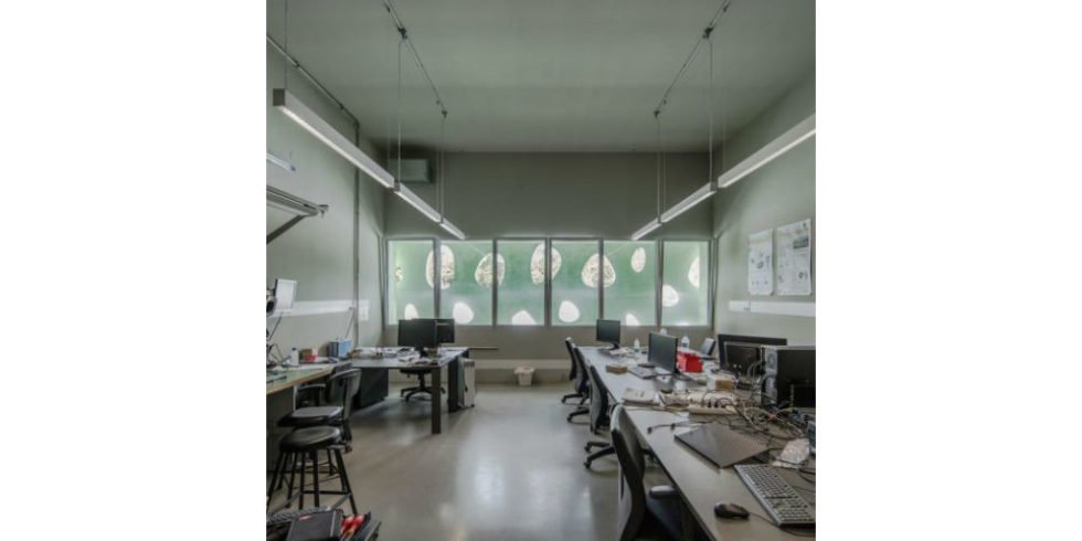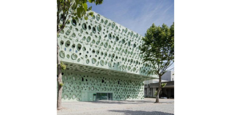 Hinter ungewöhnlichen mintgrünen Mauern mit organischer Struktur arbeiten Bauingenieure des IBS-Instituts der portugiesischen Minho Universität. Sie forschen an der Entwicklung lichtaktiver Pigmente, die in die Fassadentechnik integriert werden können. Sie sollen herkömmliche Solarfassaden ersetzen, die in der Produktion als teuer gelten.