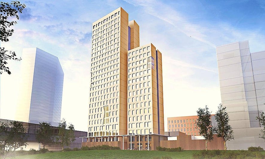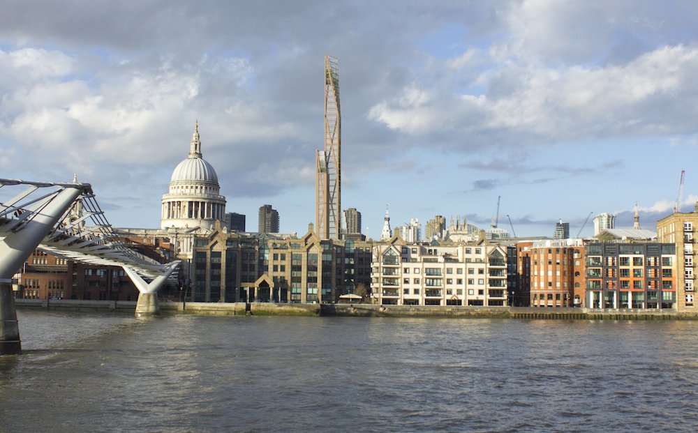 Überragend: Laut Plan ist das Holzhochhaus für London knapp doppelt so hoch wie die Türme des Kölner Doms.