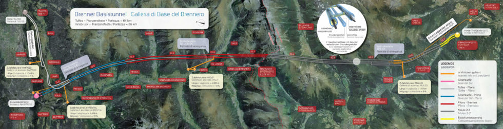 Es ist ein österreichisch-italienisches Gemeinschaftsprojekt, das seit Baubeginn vor zehn Jahren im Felsmassiv der Alpen, unter dem Brenner-Hauptpass, Gestalt annimmt. Zwei 64 km lange Tunnelröhren werden künftig die Städte Innsbruck in Nordtirol und Franzensfeste in Südtirol miteinander verbinden – es wird der längste Eisenbahntunnel der Welt sein. 2028, so die neuesten Schätzungen, soll das kühne Mammutprojekt in Betrieb gehen. Dann will die europäische Gesellschaft Brenner Basistunnel (BBT SE) mit 9,3 Milliarden Euro Gesamtkosten eine „Punktlandung“ hinlegen, Inflation inklusive.