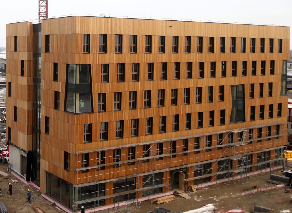 In Winthertur soll es bald ein 100 Meter hohes Holzhochhaus mit „timber structure“ geben. Das auf dem Namen „Rocket“ getaufte Gebäude wird demnach eine Tragstruktur komplett aus Massivholz haben. Kurz gesagt: Sowohl die horizontale als auch die vertikale Struktur von Rocket basiert auf Holz. Zum Einsatz kommt eine neu entwickelte Technologie, die so genannte Holzverbundflachdecke.