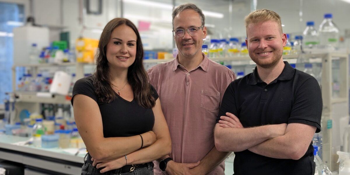 Dieses Forschungsteam hat nachgewiesen, dass Mikroben Luft zur Energiegewinnung nutzen. Von links nach rechts: Sarah Soom, Christoph von Ballmoos, Stefan Moning, Departement für Chemie, Biochemie und Pharmazie, Universität Bern.