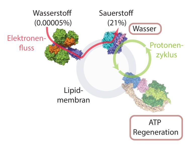 Im Labor kamen jedoch keine Nährstoffe zum Einsatz – sondern nur die Spuren von Wasserstoff in der Luft. Stefan Moning, Zweitautor der Studie, berichtet: „Eine Schwierigkeit dieses Experiments, die wir schliesslich überwinden konnten, war, die Proteine so in die Membran einzubauen, dass die Protonen in die richtige Richtung gepumpt werden.“