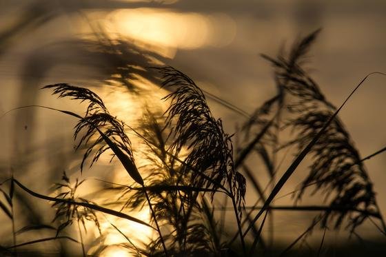 Schilf im Sonnenuntergang: Die Pflanze ist nicht nur hervorragendes Material für die Deckung von Dächern. Sie könnte auch Akkus leistungsfähiger machen.