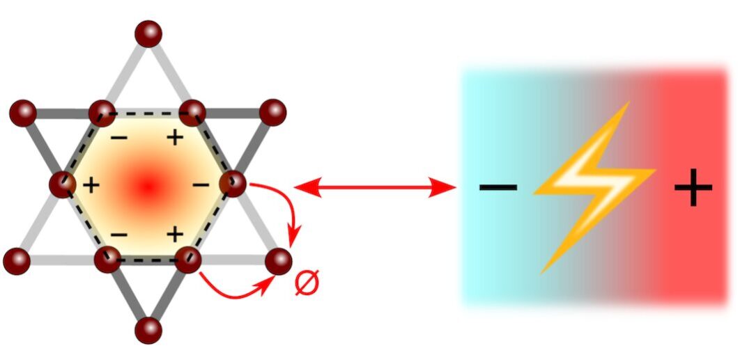 Die Suche nach noch besseren und preiswerteren Lösungen hat die Forschenden beschäftigt. Sie führte sie zu sogenannten Kagome-Metallen. Der Begriff stammt aus dem Japanischen und beschreibt ein spezielles Flechtmuster aus Sechsecken und Dreiecken, wie es bei traditionellen Bambuskörben vorkommt. In manchen Materialien ordnen sich die Atome tatsächlich in solchen Mustern an, was besondere physikalische Eigenschaften zur Folge hat. Fachleute bezeichnen dies als „geometrische Frustration“, wenn bestimmte Ladungen im Material nahezu bewegungslos werden und im Kagome-Muster regelrecht gefangen sind.