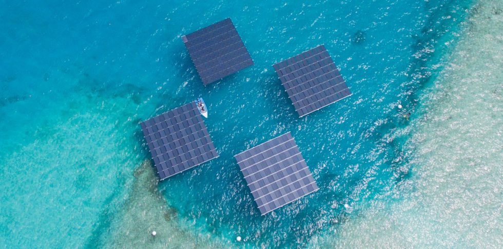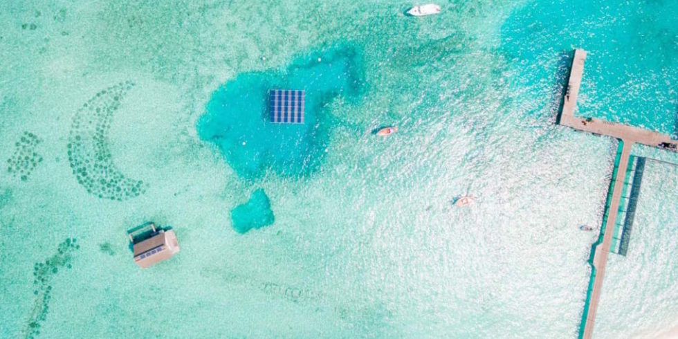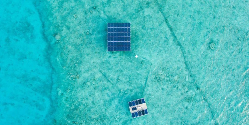 Swimsol hat sich für das Platzproblem eine Lösung einfallen lassen. Das Start-up aus Österreich hat Solar Sea entwickelt – 14 x 14 Meter große Solarplattformen, die nicht auf dem Land stehen, sondern im Wasser schwimmen. Eine Plattform besteht aus 96 Solarpaneels, die jeweils eine Leistung von 260 Watt haben. Eine Solarinsel würde laut Hersteller somit ausreichen, um 192 LCD-Fernseher mit Strom zu versorgen. Swimsol ist überzeugt: Ein durchschnittliches maledivisches Resort kann mit einer schwimmenden Solaranlage je nach Ausbaustufe bis zu 30 % Diesel einsparen.