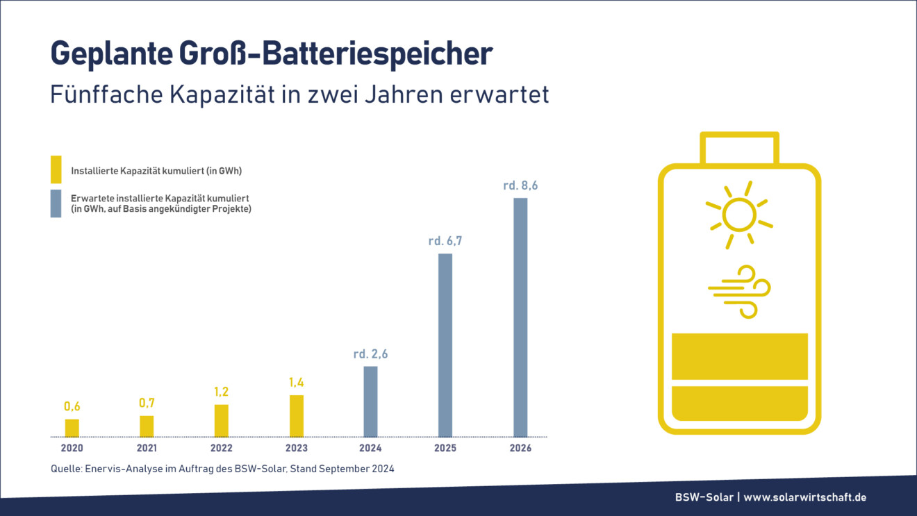 Die Projekte eint ein Ziel: Sie sollen das Stromnetz robuster machen und Energieengpässe in kritischen Situationen abfedern. Die Bundesnetzagentur geht davon aus, dass sich die Kapazitäten von aktuell etwa 1,8 Gigawattstunden (GWh) bis 2026 auf rund 7 GWh erhöhen. Eine Verfünffachung innerhalb weniger Jahre.