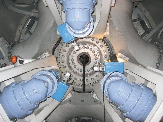 Vom Sensor überwacht: Windkraftanlagen sind mit vielen Sensoren ausgerüstet, zum Beispiel im Bereich der Rotorblattverstellung. Den Maschinenherstellern und Betreibern können die Sensordaten wichtige Informationen liefern.