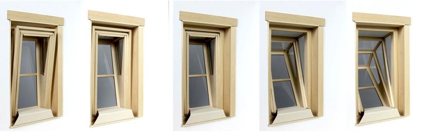 Das Modell „Awning Niche“ macht den Blick vor allem nach unten frei. Das Fenster ist an der Oberkante durch ein Scharnier befestigt, so dass sich die Scheibe aufklappen lässt. Natürlich ist das aufgeklappte Fenster so stabil, dass man sich auf dem Rahmen hinauslehnen und das Geschehen auf der Straße beobachten kann.