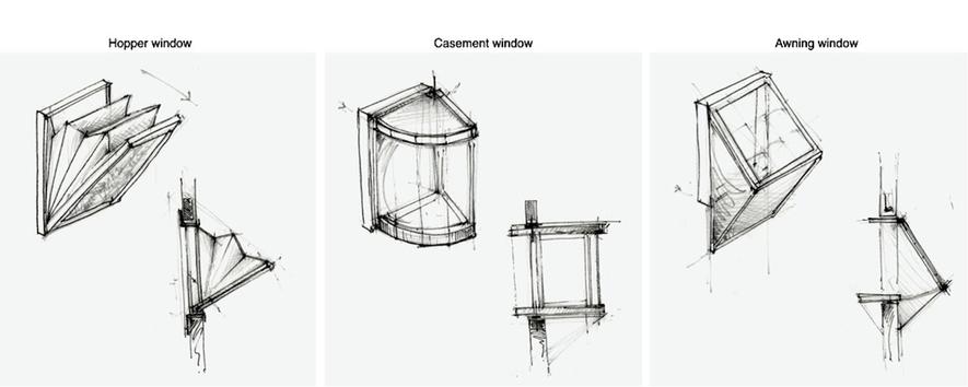 Ein gemütliches Plätzchen wie in einem Erker bietet das Modell „Casement Niche“. Der Name Casement, der so viel wie Flügel bedeutet, verrät schon, dass diese Variante wie ein nach außen gestülpten, gläsernen Erker aussieht. Wie eine Drehtür lässt sich dieses Fenster öffnen. Der Bewohner kann sich in den Erker hineinsetzen und den Blick seitlich genießen.