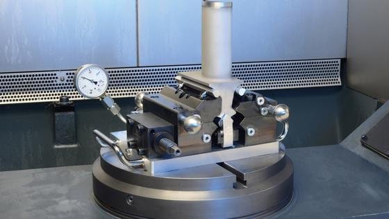 Die Lösung, sagt Kalocsay, der für seine Dissertation an der Vibrationsdämpfung im Spannsystem forscht, seien halbautomatisierte Spannsysteme, die die Bauteile selbsttätig ausrichten. Eines dieser halbautomatisierten Spannsysteme, das Kalocsay für eine Prozesskette entwickelt hat, verfügt über vier Hydraulikkreisläufe, die mit steigendem Druck nacheinander das Werkstück hochgenau ausrichten und anschließend fixieren. Die Wiederholgenauigkeit mit dieser Methode liege innerhalb von zehn Mikrometern und die Spannzeit sei kürzer als zehn Sekunden.