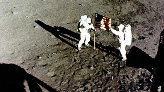 Neil Armstrong, Edwin „Buzz“ Aldrin und Michael Collins landeten mit der Mission Apollo 11 als erste Menschen auf dem Mond. Während Collins im Kommandomodul des Raumschiffs Columbia zurückblieb, setzten Armstrong und Aldrin am nächsten Tag mit der Mondlandefähre Eagle auf dem Erdtrabanten auf. Wenige Stunden später betrat Armstrong als erster Mensch den Mond, kurz danach auch Aldrin. Nach einem knapp 22-stündigen Aufenthalt startete die Landefähre wieder von der Mondoberfläche und kehrte zum Mutterschiff zurück.