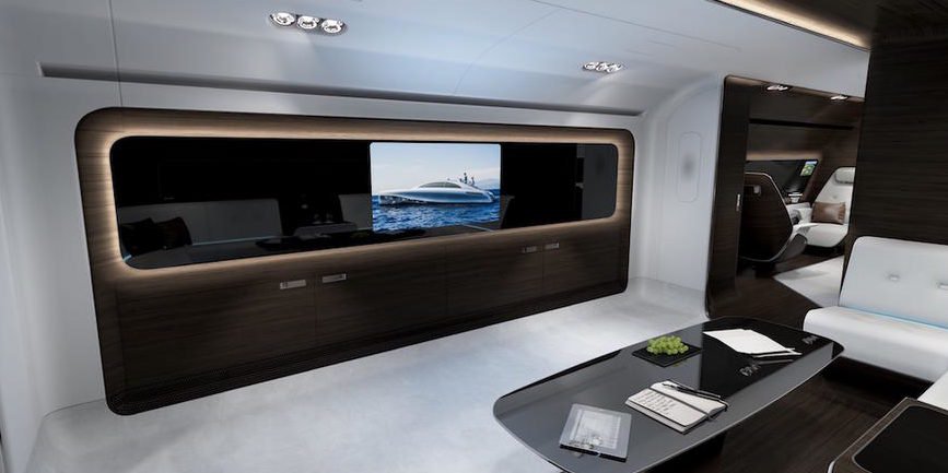 Doch wo liegt eigentlich der Unterschied, ob man mit einer Luxusyacht auf dem Wasser oder mit seinem Privatjet in der Luft unterwegs ist? Also stellten die Mercedes-Designer gleich auch noch ihre Version eines Kabinendesigns für VIP-Flugzeuge vor, das sie gemeinsam mit den Ingenieuren der Lufthansa Technik entwickelt haben. Der Vorteil dieser Kooperation: Das Design ist nicht nur visionär, es lässt sich wirklich in ein Flugzeug einbauen und bestellen. Lufthansa Technik bietet die VIP-Kabine für Privatjets auf Basis von Airbus- oder Boeing-Flugzeugen an.