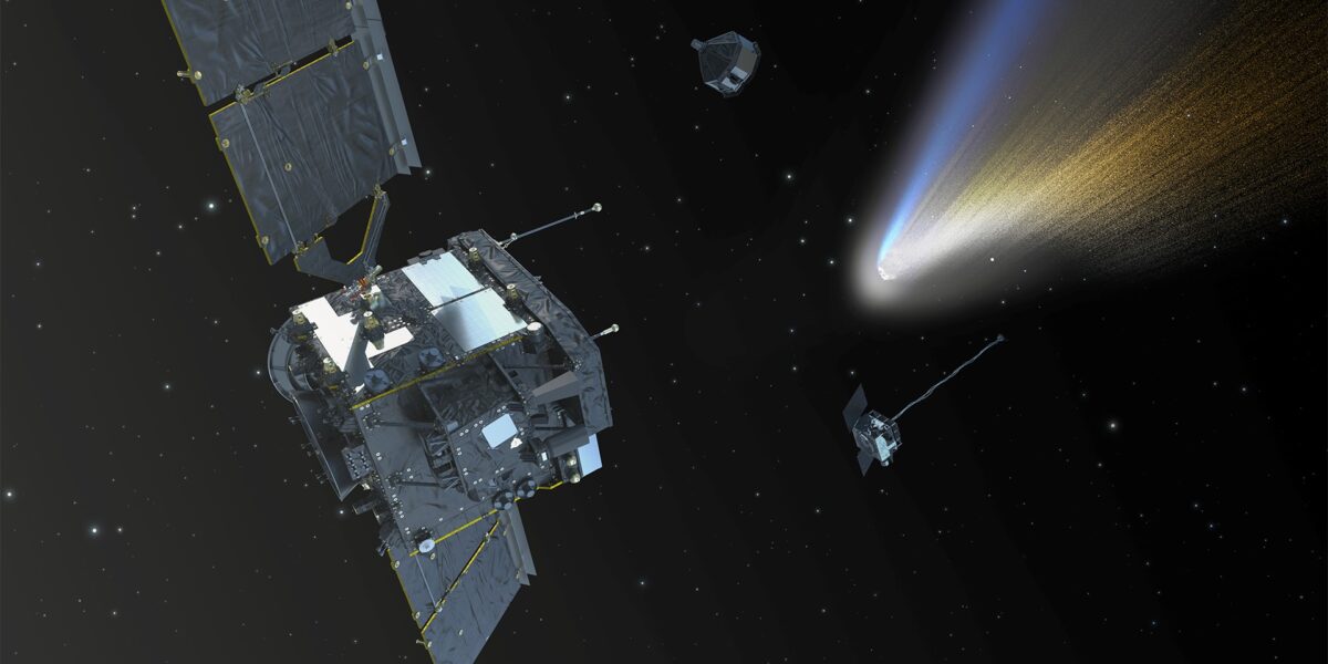 Der Comet Interceptor der ESA wird die erste Mission sein, die einen Kometen aufsucht, der direkt aus den äußeren Bereichen des Sonnensystems kommt und Material mit sich führt, das seit der Entstehung der Sonne unberührt geblieben ist. Nach dem Start wird die Raumsonde im Weltraum „geparkt“, bevor sie einen geeigneten, unberührten Kometen abfängt. Sobald sich der Komet nähert, setzt die Hauptsonde zwei Sonden ab, um ihn gleichzeitig aus mehreren Richtungen zu beobachten.