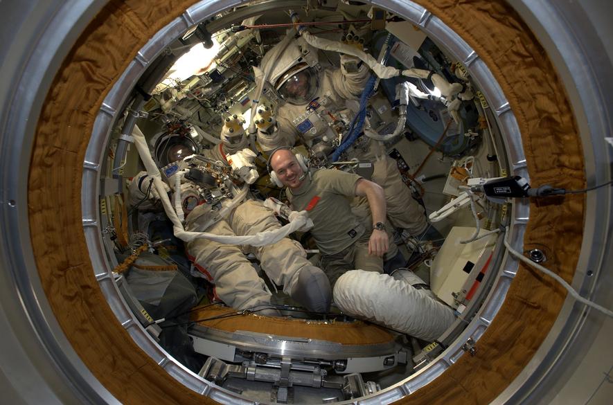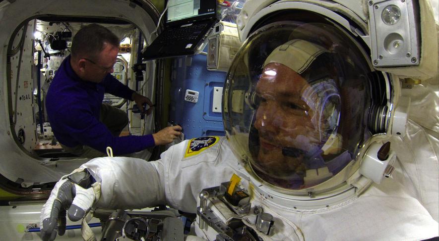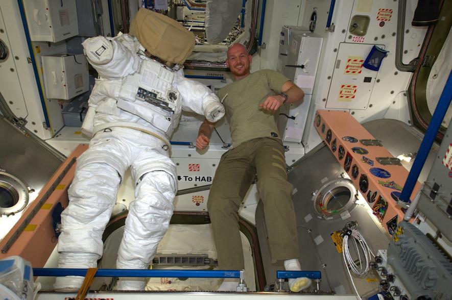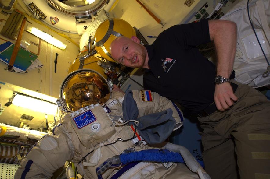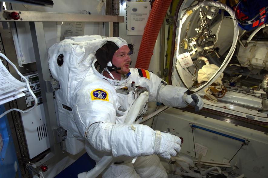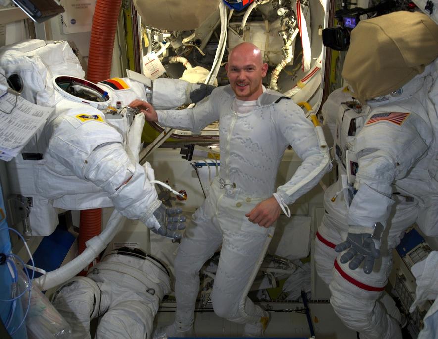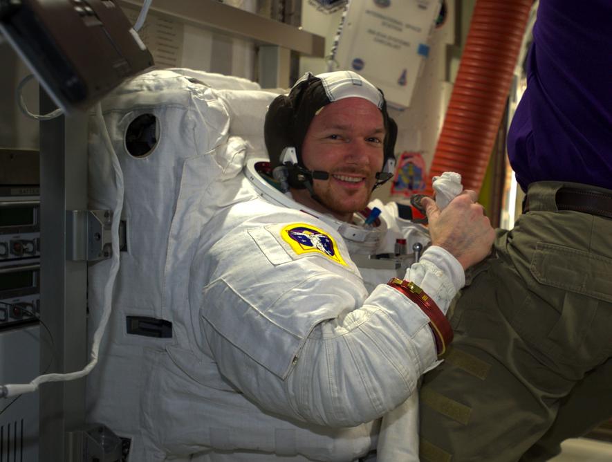 Alexander Gerst 2014 in Unterwäsche, als er sich auf seinen Spacewalk vorbereitete.