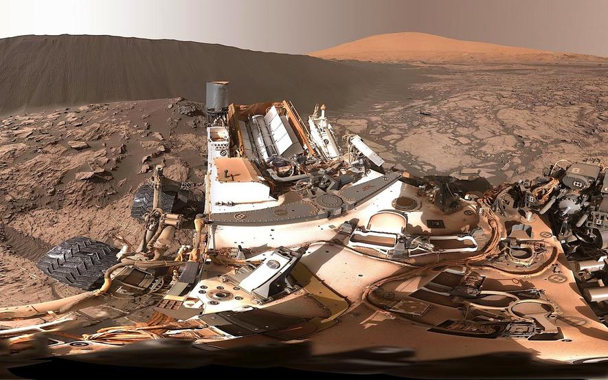 360°-Aufnahme der Namibdüne auf dem Mars durch den Rover Curiosity: Der Roboter hat nun Hinweise auf dem Mars gefunden, dass die Atmosphäre des Planeten früher deutlich mehr Sauerstoff enthielt.