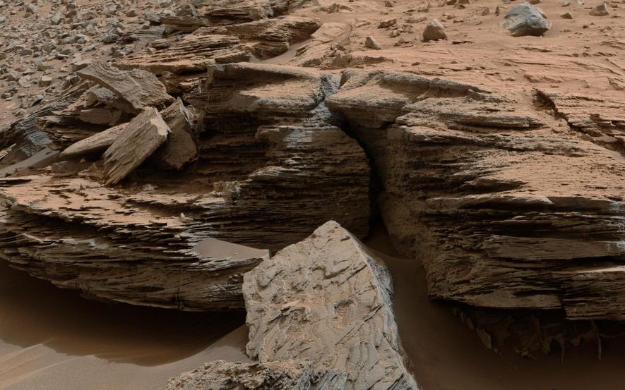 In der Region namens Windjana im Gale-Krater auf dem Mars entdeckte der Rover Curiosity Manganoxid im Gestein.
