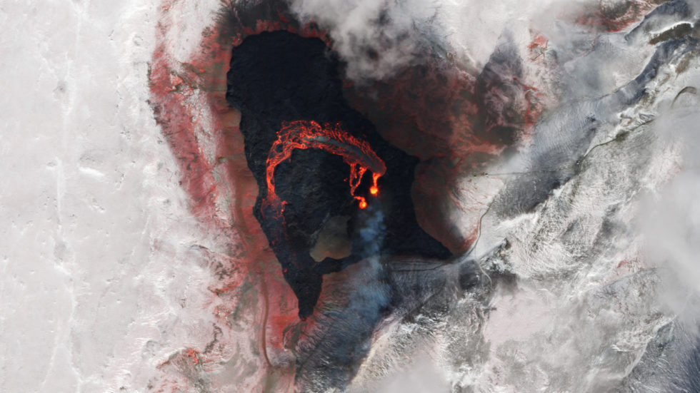 März 2021: Die SkySat-Satelliten von Planet Labs liefern spektakuläre Aufnahmen aus Island: Dort bricht der Vulkan Fagradalsfjall aus.