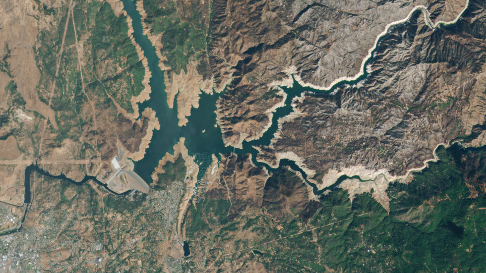 Oktober 2021: Erneut gibt es eine extreme Dürre im Westen der USA. PlanetScope-Aufnahmen zeigen das ganze Ausmaß: Die Wasserstände in den Reservoirs sind beängstigend niedrig, der Lake Oroville in Kalifornien kurz vor dem Austrocknen. Das riesige Wasserkraftwerk an dem See wird wegen Wassermangels gar geschlossen. Die Dürre hat Auswirkungen auf die Wasserressourcen und die Landwirtschaft in der gesamten Region, in Kalifornien wird der Notstand ausgerufen. Neue Verfahren zur Verwaltung der Wasserreservoirs werden nun erforscht und sollen in Zukunft helfen, mit den begrenzten Ressourcen auszukommen.