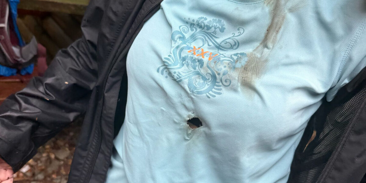 Deutsche Touristin überlebt einen Blitzschlag. Auf ihrem T-Shirt ist deutlich das Brandloch zu erkennen.