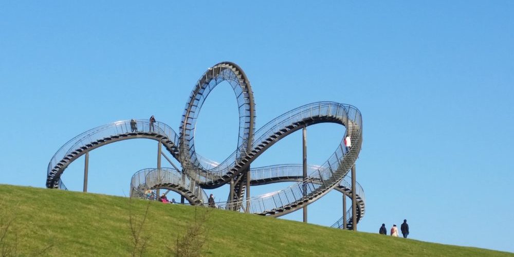 Ein kleiner Tipp, für diejenigen, denen das alles zu aufregend ist. Planen Sie doch stattdessen einen Ausflug nach Duisburg. Dort steht die Großskulptur „Tiger & Turtle – Magic Mountain“, die zwar aussieht wie eine Achterbahn, aber zu Fuß begehbar ist.