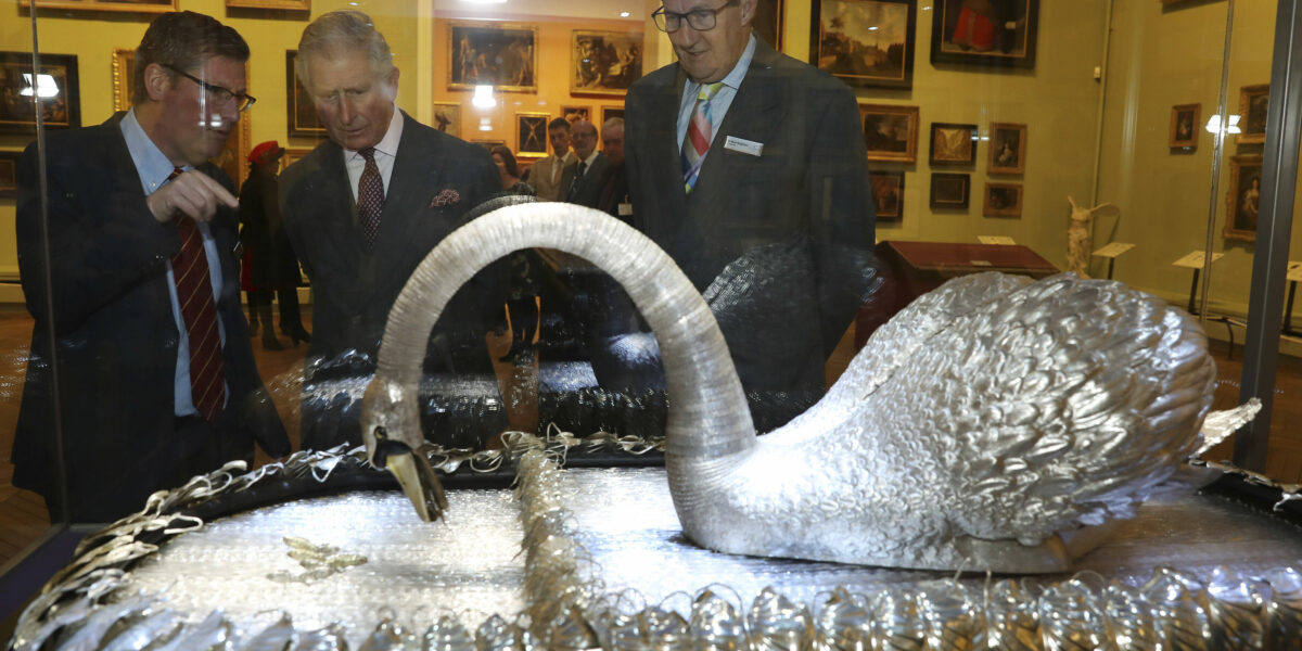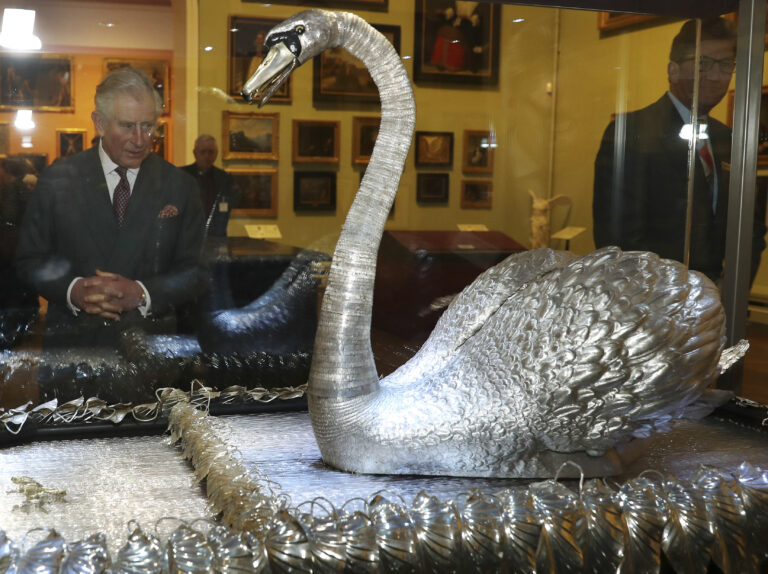 König Charles hat sich vor einigen Jahren, damals noch als Prinz Charles, die Mechanik des silbernen Schwans erklären lassen.