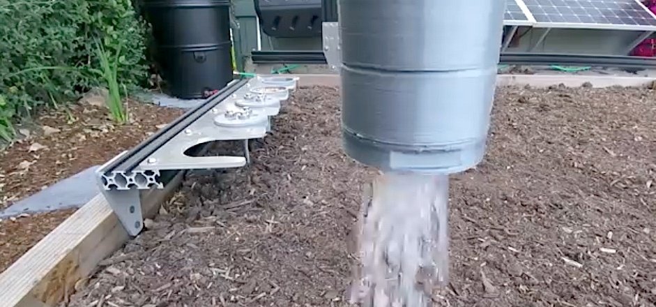 Besonders pfiffig: Mit einer Kamera lokalisiert der FarmBot Genesis lästiges Unkraut und kann dieses mit einer Art Tiefenbohrer auf Höhe des Wurzelwerks der Unkrautpflanze vernichten.